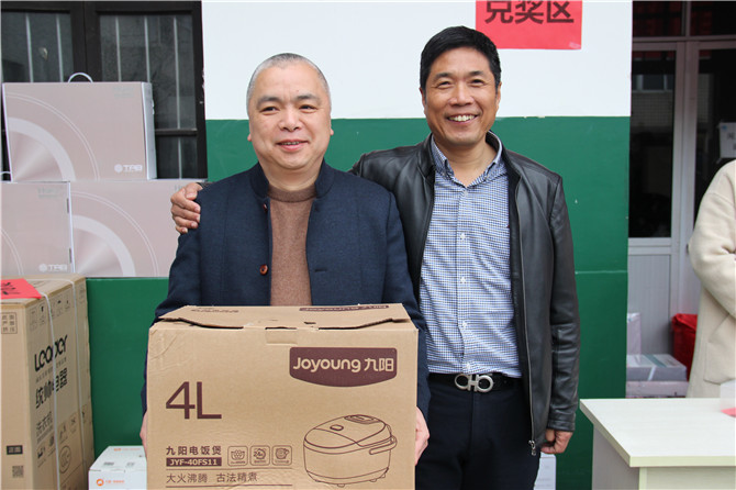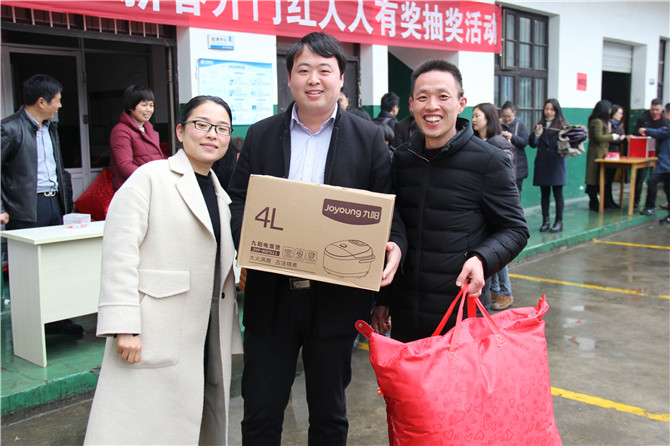 華寶公司為了迎接和感謝2017年的辛勤付出及時返崗的員工,在董事長胡仁寶先生的親自帶領下,公司為員工準備了豐厚的獎品:大到洗衣機、掃地機、電飯煲小到被子、背包、四件套、開水煲、電吹風、雨傘、保溫杯等等只要到場人人有獎。