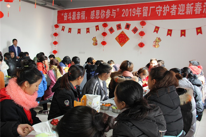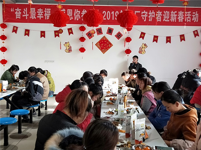 1月29日,華寶集團(tuán)行政中心聯(lián)合黨工會(huì)以及積極參與的志愿者們?yōu)?019年留廠約60人的守護(hù)者舉辦迎新送溫暖活動(dòng),所有的志愿者都提前布置會(huì)場(chǎng),拉彩旗、貼墻紙、掛燈籠、洗水果裝盤(pán)、分干果、包餃子以及維護(hù)現(xiàn)場(chǎng)持續(xù)等等,音樂(lè)響起來(lái),吃著干果,話家常,善歌者唱歌,善舞著跳舞,活動(dòng)現(xiàn)場(chǎng)氣氛熱烈,晚飯不僅有水餃還有紅燒肉,讓所有的參與人員及留守員工感受到家的溫馨、年的味道,幸福滿滿!
