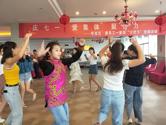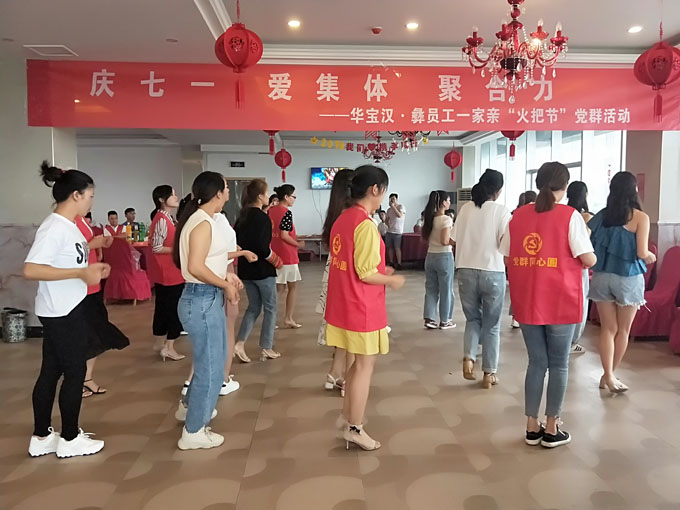 在中國共產(chǎn)黨成立98周年之際,為了提倡廣大員工愛國家、愛集體、愛家庭的良好風氣,匯聚起員工敬崗愛業(yè)、認真干事正能量,同時為了關愛、豐富員工的業(yè)余生活,華寶公司黨支部、工會聯(lián)合行政中心、供應鏈管理中心組織主題為:慶七一 愛集體 聚合力一一華寶漢·彝各族員工一家親“火把節(jié)”黨群活動,參加活動的有少數(shù)民族員工70多人以及全體黨員、各車間主管級以上和后勤人員等,總計參加人數(shù)近百人,讓少數(shù)民族同胞感受到了黨的溫暖,家的歸屬感!